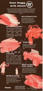 But the adventure doesn't end there - you'll also have the chance to ride a camel, the traditional mode of transport in the desert. And if you're feeling even more adventurous, try your hand at sandboarding, a thrilling activity that's similar to snowboarding but on sand instead of snow.